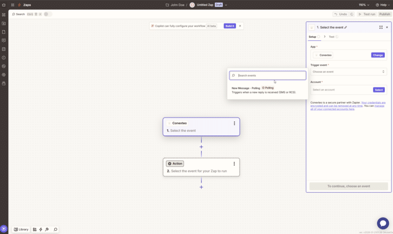- Filtrez en amont : Si possible, créez un filtre dans Conexteo pour ne transférer à Zapier que les messages contenant des mots-clés